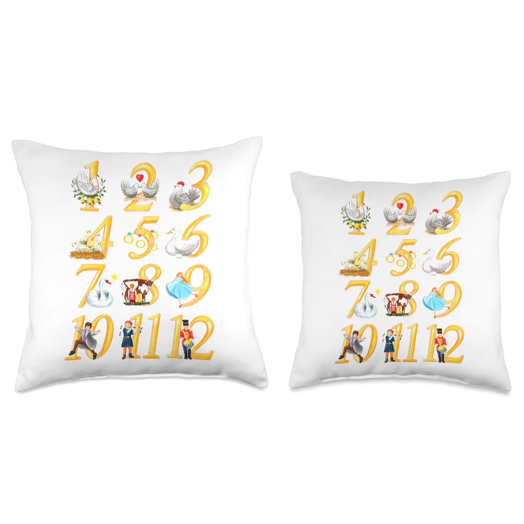 Christmas Carol 12 Days Partridge Pear Tree Throw Pillow—