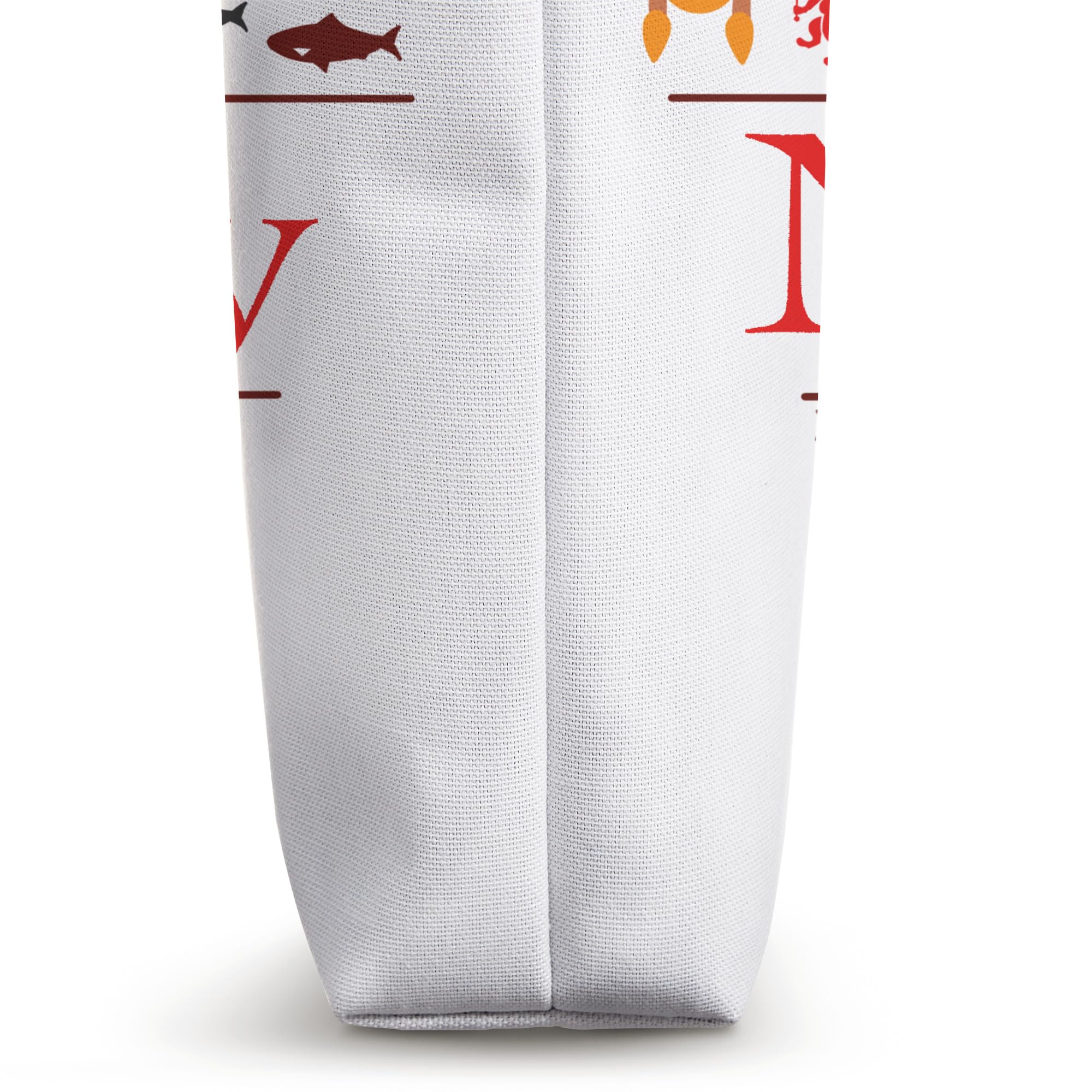 - 16” x 16” bag with two 14” long and 1” wide black cotton webbing strap handles.