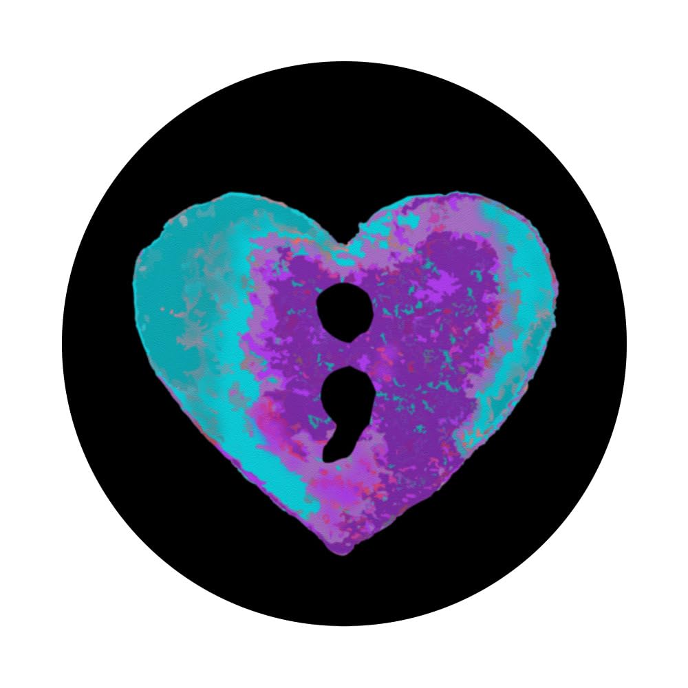 - Suicide Prevention Awareness design. This purple and teal semicolon suicide prevention PopSockets Grip phone accessory makes a bold statement to raise awareness.